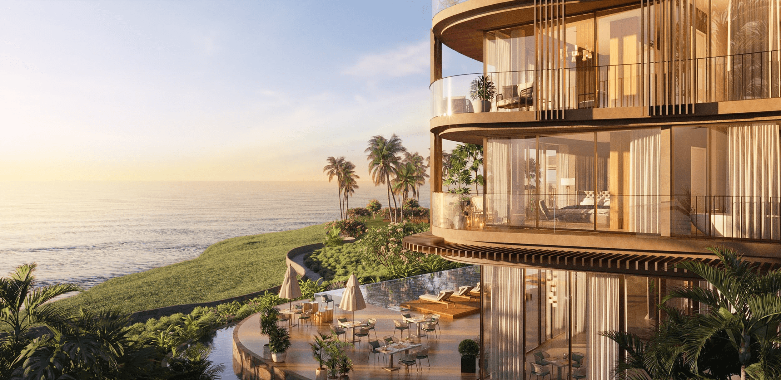 With an elevation of around 10.7 metres (35 feet) above sea level, the residences along with the 91-hotel guest rooms will enjoy spectacular panoramic sunrise and sunset views.