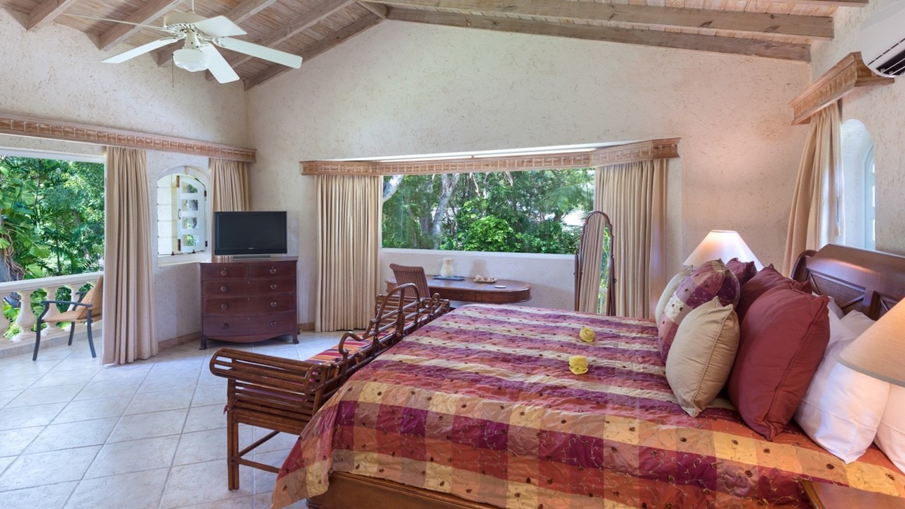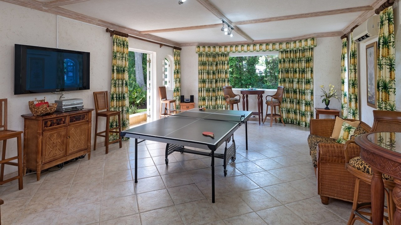 Inside, the villa is crafted with thoughtful attention to flow and comfort, encouraging seamless indoor-outdoor living. On the lower level, a generously sized games room offers a fun and relaxed space complete with a table tennis table, as well as areas for poker nights or laid-back movie evenings. Each of the five bedrooms are tastefully designed, combining luxury with comfort, cooled by the island's natural breezes. The master bedroom boasts a fantastic, natural view of lush, mature trees, creating a serene, woodland atmosphere.