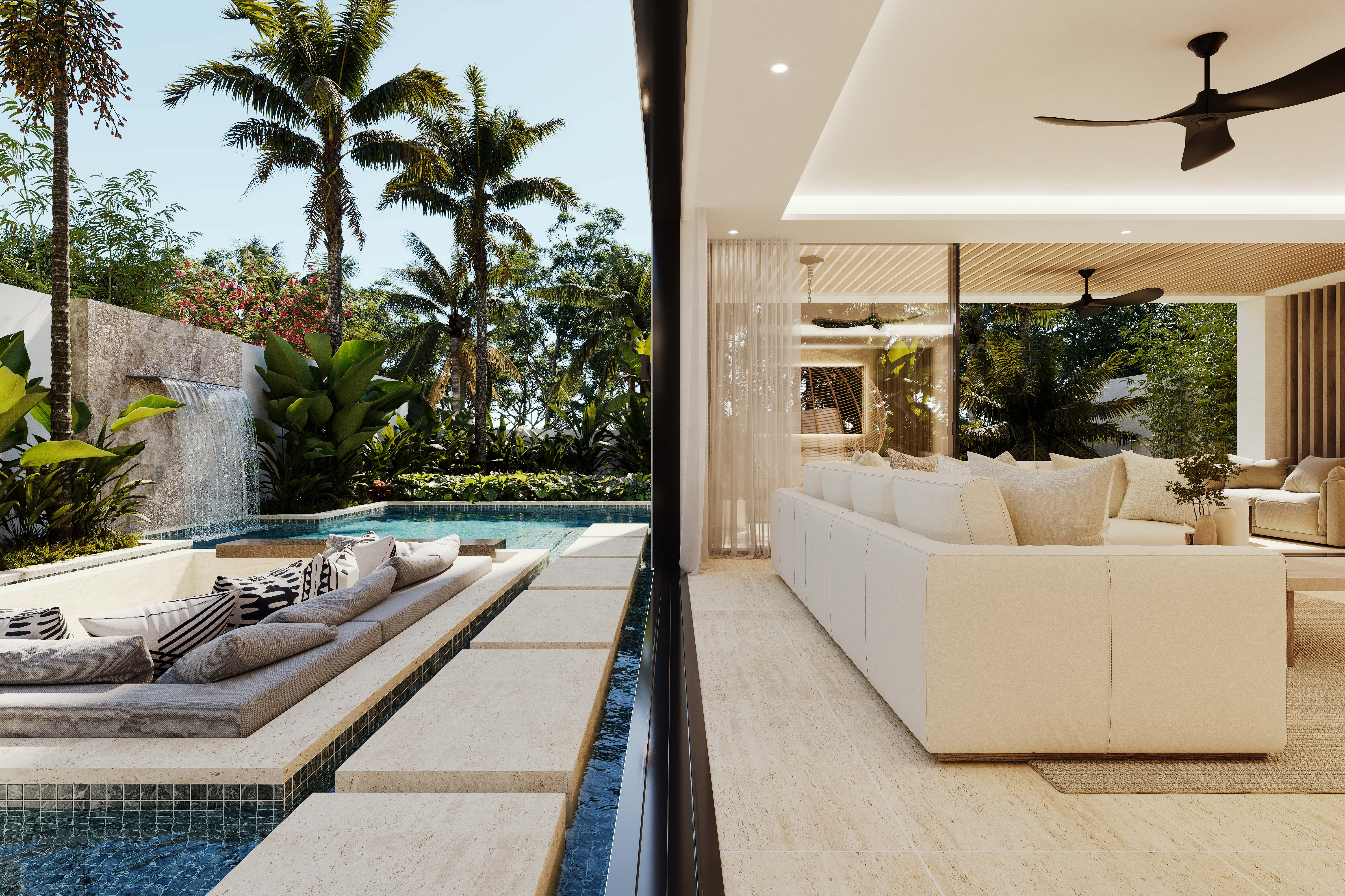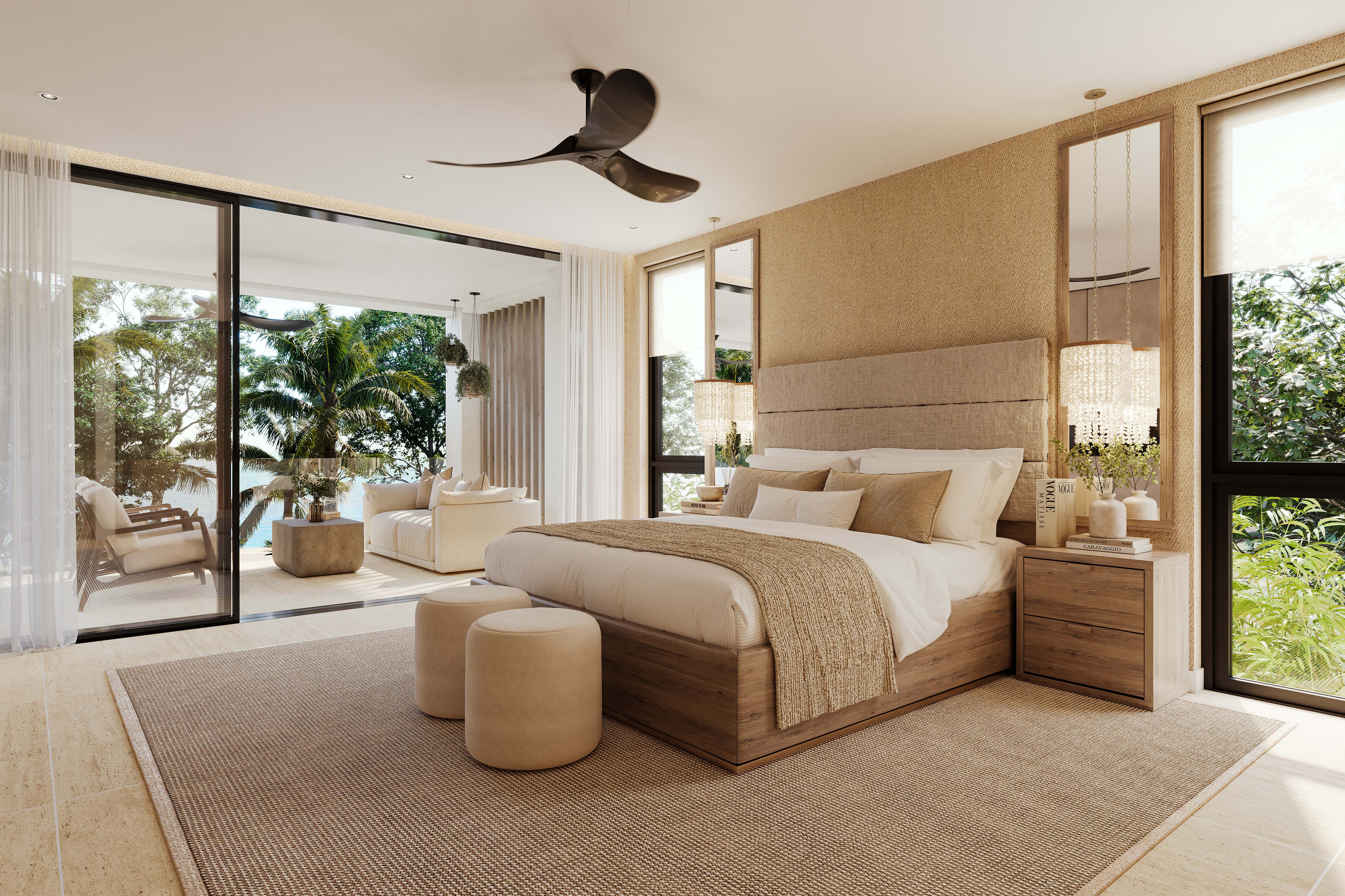 This villa is a sanctuary of tranquility, blending sophisticated architectural design with lush tropical landscaping. Expansive glass doors and windows invite seamless indoor-outdoor living, while native flora, bamboo screens, and cascading rooftop gardens offer privacy and a connection to nature. Every detail, from the bespoke interiors to the Italian travertine flooring and handcrafted finishes, has been curated to elevate the Caribbean lifestyle.